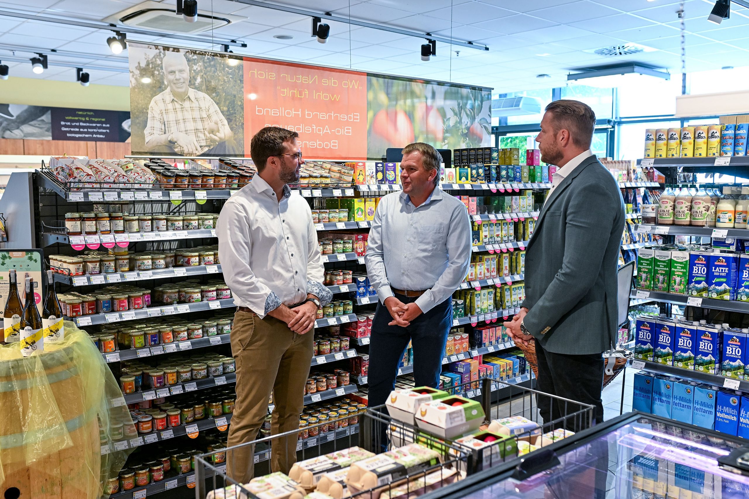 Bürgermeister Dr. Bieri begrüßt neuen Betreiber von Denns BioMarkt im Postcarrée